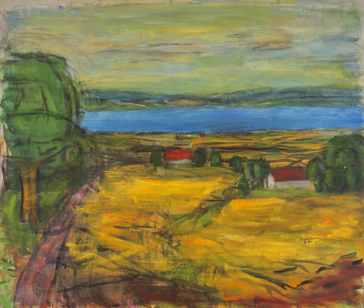 Påskrift (a tergo): Skördelandskap ((på spännramen))